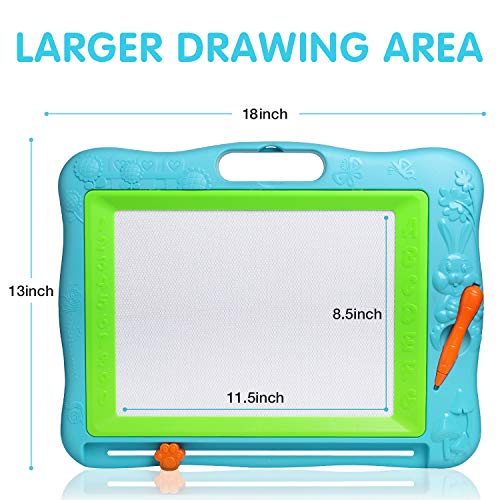 Gamenote Extra Large Magnetic Drawing Board 18×13 with Stamps & Stencils & Replacement Pen – Education Doodle Toys for Kids, Colorful Erasable Magnet Writing Sketching Pad for Toddlers Learning
