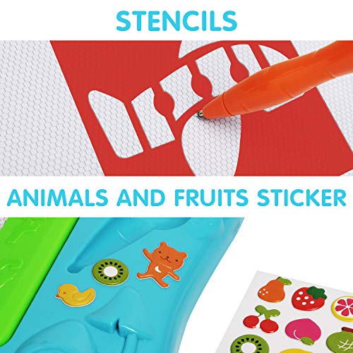 Useful Drawing Accessories: Come with 5 Fruit Stamper Magnets, 6 Plastic Stencils(6 different vehicles), 2 cute Stickers and 1 Extra Replacement Pen.These useful tools help children easy to get start and your child can have more drawing options with these. Adorable stickers help children to décor the board by themselves