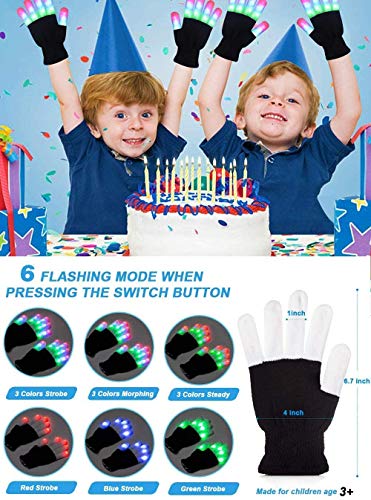 Kids Led Flashing Finger Lights Gloves 3 Colors 6 Modes for 3 4 5 6 7 8 9 10 11 12 13 Years Old Boys Girls Autistic Children top Toy Gifts Idea Best Cool Funny Present Halloween Christmas Party Favor