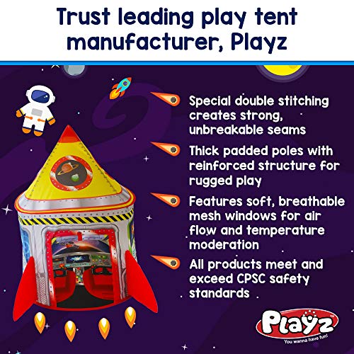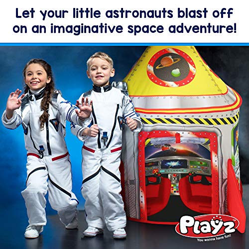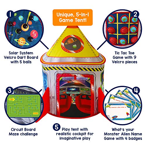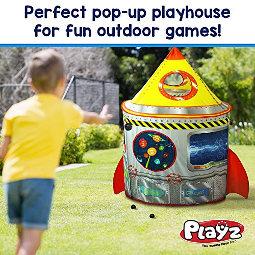 Playz 5-in-1 Rocket Ship Play Tent for Kids with Dart Board, Tic Tac Toe, Maze Game, & Immersive Floor – Indoor & Outdoor Popup Playhouse Set for Toddler, Baby, & Children Birthday Gifts