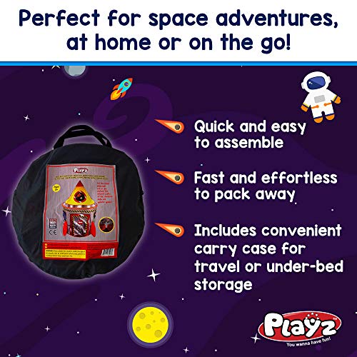 Playz Space Rocket Play Tent Set provides instant joy, unlimited fun and hours of adventurous play. Great cool kids toys, toddler boy toys and toddler girl toys.