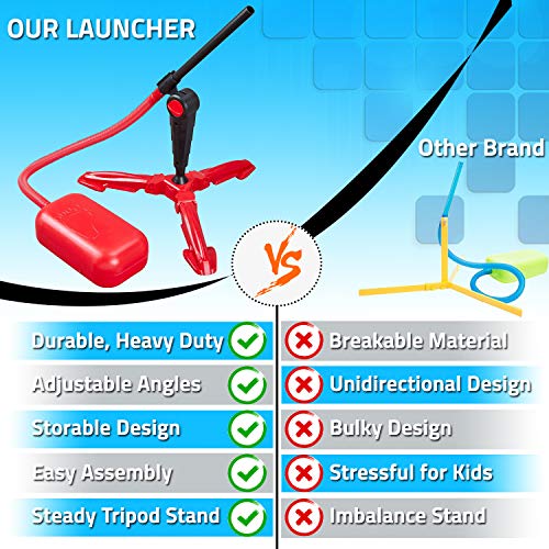 👍 EASY ASSEMBLY AND STORAGE – This high-flying toy rocket launcher is durable, built-to-last and features a stand that folds for easy storage in small spaces. The launcher is quick to assemble and requires no electricity or batteries. Perfect for a birthday or holiday gift!