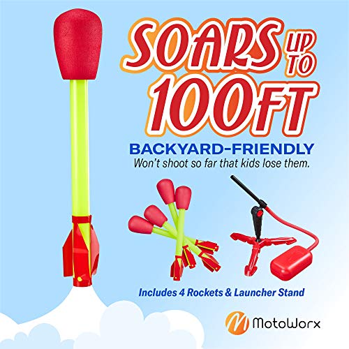 🛫 SOAR UP TO 100 FT HIGH! Watch rockets soar up to an incredible 100 feet in the air with the perfect stomp. MotoWorx toy rockets are backyard-friendly and parent-approved and won’t shoot so far that kids lose track of them. Have fun in the yard, park or playground!