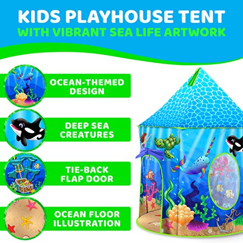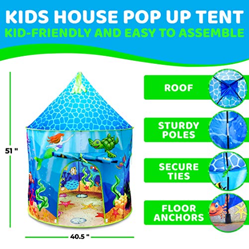 USA Toyz Under The Sea Kids Tent – Mermaid Kids Play Tent, Indoor Playhouse Tent for Boys and Girls with Included Pop Up Tent Storage Tote